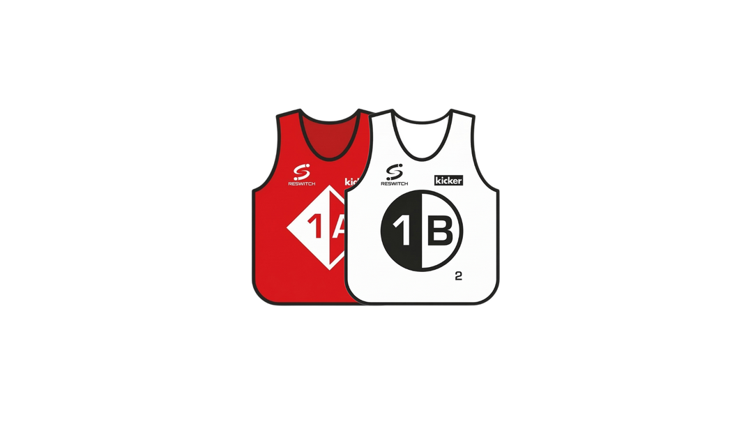 Einfach und simpel: Für unsere Trainingsmethode haben wir Trainingsleibchen entwickelt, die unterschiedliche Farben, Symbole, Zahlen und Buchstaben enthalten, wodurch 4 Teamkonstellationen ermöglicht werden.